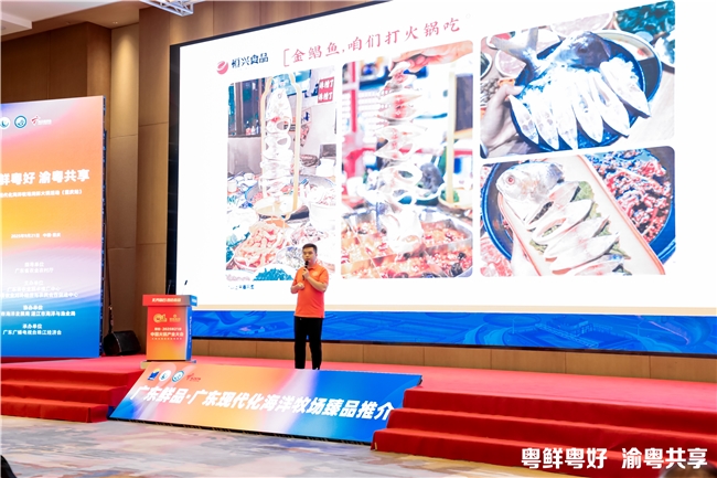 活动现场,广东现代化海洋牧场区域公用品牌“广东鲜品”与多家广东现代化海洋牧场企业集体亮相,全面展示了广东鲜品的卓越品质和在火锅场景中的广泛适配性。广东恒兴集团有限公司产品总监林志明提到,企业通过技术改造提升金鲳鱼的鲜味,优化后的金鲳鱼产品近两个月在西南市场的销量突破8000件,更在此次活动中获得了多家火锅企业的青睐。广东海威农业集团有限公司销售总监陆日宝介绍,为让金鲳鱼更好地契合重庆火锅的吃法,他们在产品处理上做了针对性创新,先对金鲳鱼进行拉花处理,再去头去尾,最终切成一厘米厚的鱼生片,满足消费者对火锅食材“快涮、鲜吃”的需求。