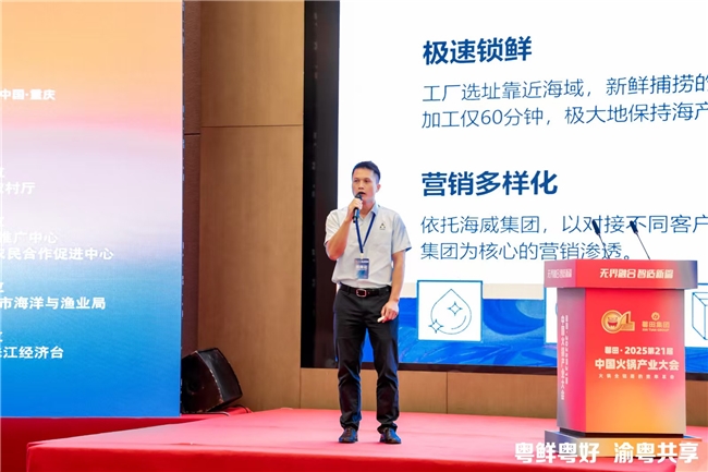 秋分将至,丰收正浓。一场跨越山海的“鲜味”奔赴,在重庆火辣上演。9月21日,“粤鲜粤好,渝粤共享——广东现代化海洋牧场海鲜火锅活动”在第21届中国火锅产业大会上举办。金鲳鱼、海鲈鱼等广东现代化海洋牧场臻品惊艳亮相山城,来自全国300余家顶级火锅品牌及供应链企业共赴这一场“鲜辣碰撞”的行业盛会。